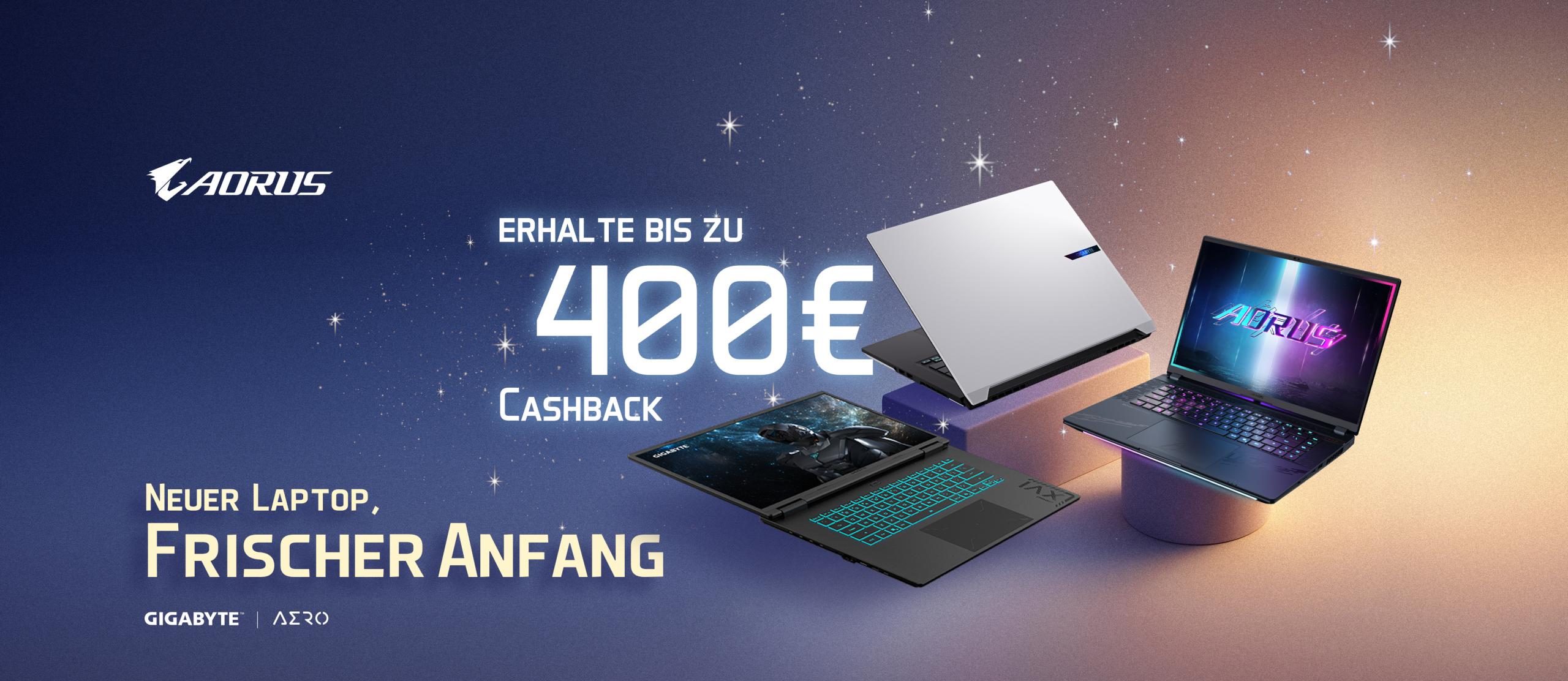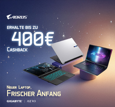 Kauf einen der ausgewählten GIGABYTE-Laptops und sichere dir bis zu 400 EUR Cashback!