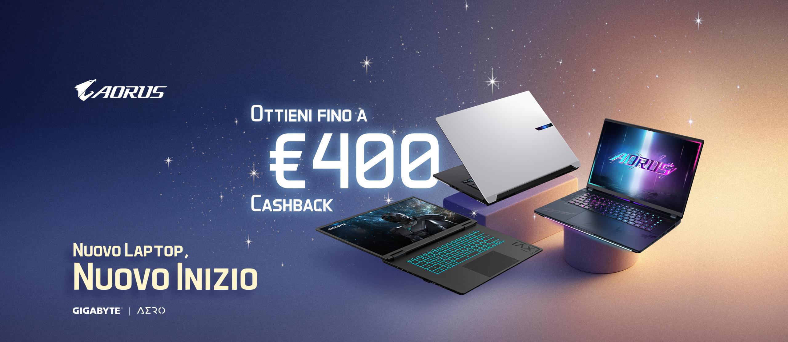 Acquista un laptop GIGABYTE selezionato e ricevi fino a 400 € di cashback!